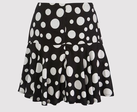 Amelia body hugging mini ruffled skirt, black-white dot printed